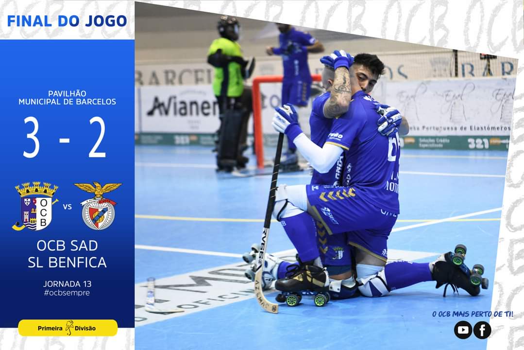 Em encontro da 13a jornada do nacional de hóquei em patins, o Óquei de Barcelos venceu por 3-2 a formação que se deslocou da capital até à terra dos Galos com início marcado às 11 horas deste Sábado, Barcelos – Benfica.
