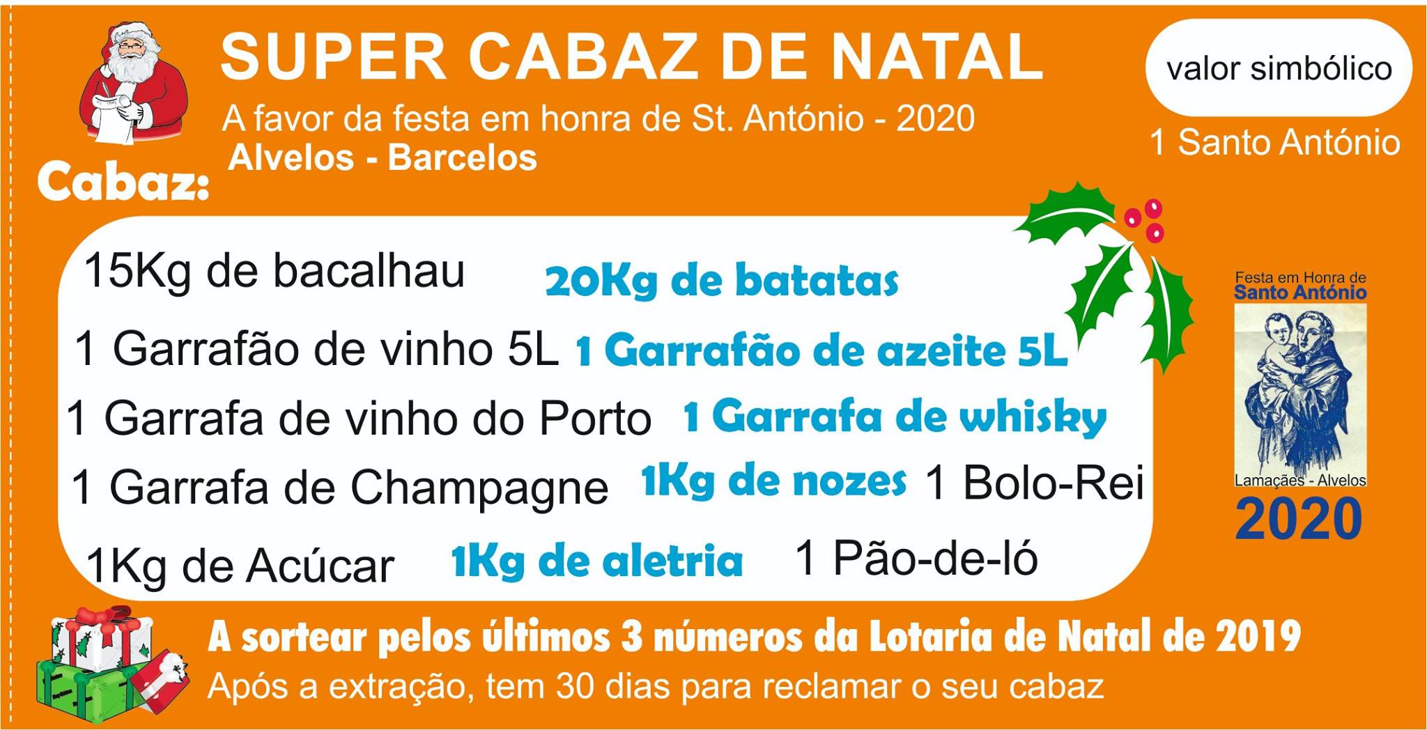 A Comissão de Festas vem por este meio informar que já se encontra á venda as rifas para o Super Cabaz de Natal A Favor da Festa em Honra de Sto António – 2020